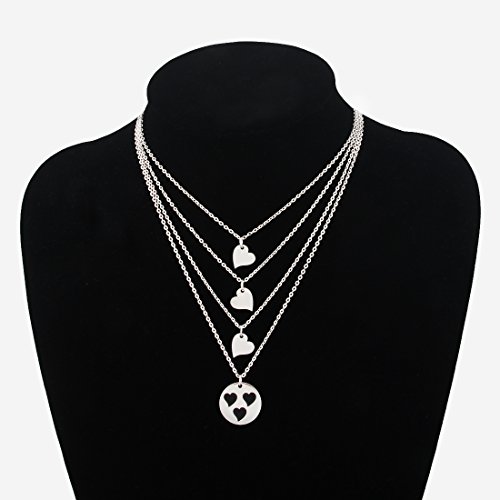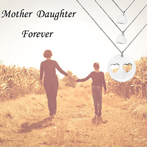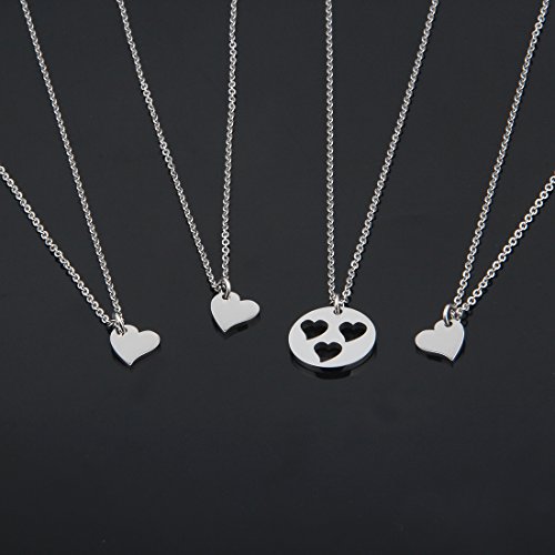 Perfect gift for mother. four separate necklaces featuring sterling silver cut out heart disc for mother and tiny heart necklaces for daughters.