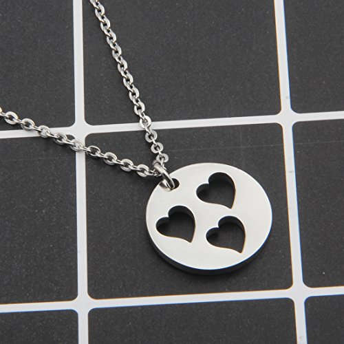 This set includes both the large pendant with one heart cut outs, as well as three small heart charm necklaces that fit right in place.