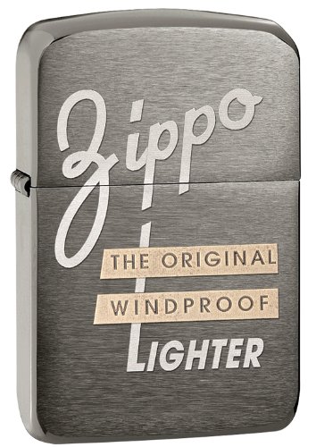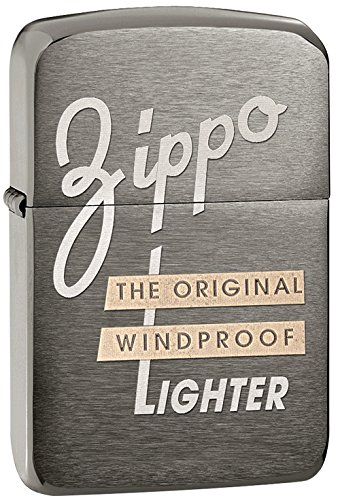 The expression everything old is new again rings true with this genuine Zippo black ice windproof lighter engraved with packaging art from the 1940s, using a multi-level engraving technique to produce the two-tone image. Beautiful in dramatic black ice PVD finish, the 1941 Replica is identified by several characteristic features, including a four-barrel hinge that joins the lid and bottom (the current Zippo lighter has a five-barrel hinge.) Flat front and back surfaces meet the sides with sharp, less rounded edges than current models. Sides of the inside unit are flat, with squared edges where they meet the front and back surfaces. The inside unit has fewer holes in the chimney than current models and is also fitted with a hollow rivet that holds the striking wheel in place. Refill with Zippo premium lighter fluid for dependable, long-lasting service. Distinctive bottom stamp identifies this lighter as genuine Zippo. Packaged in an exclusive silver foil gift box with Zippo Lifetime Guarantee.Feature