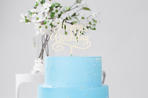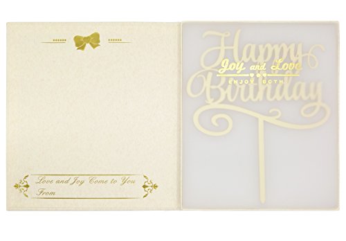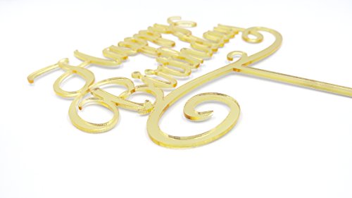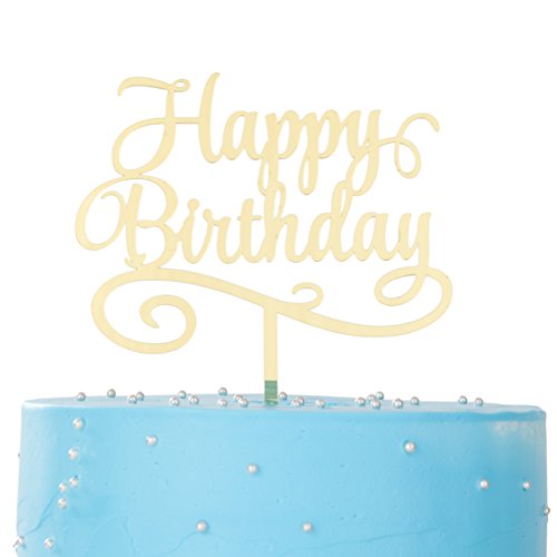 LOVENJOY with Gift Box Happy Birthday Cake Topper Mirror Gold (4.3 inches)