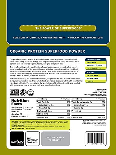 Navitas Naturals Protein Blend is an energizing, nourishing and delicious ready-for-your-blender smoothie mix of three of the world's most nutrient-rich whole foods: hemp; cacao; and maca. This robust trio of superfoods provides you with natural strength and energy to power through your day.