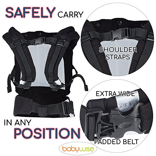 SAFELY CARRY IN ANY POSITION: The extra wide padded belt and shoulder straps offer stability while taking pressure off your back and providing your child a secure seat that is always comfortable