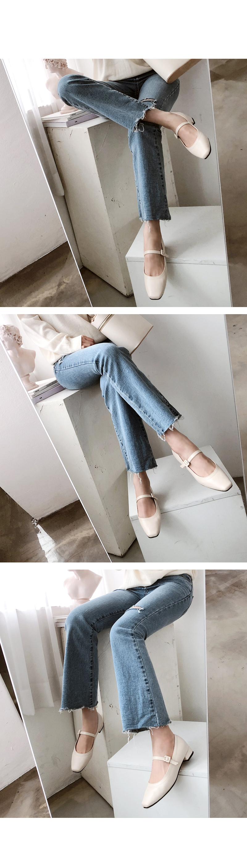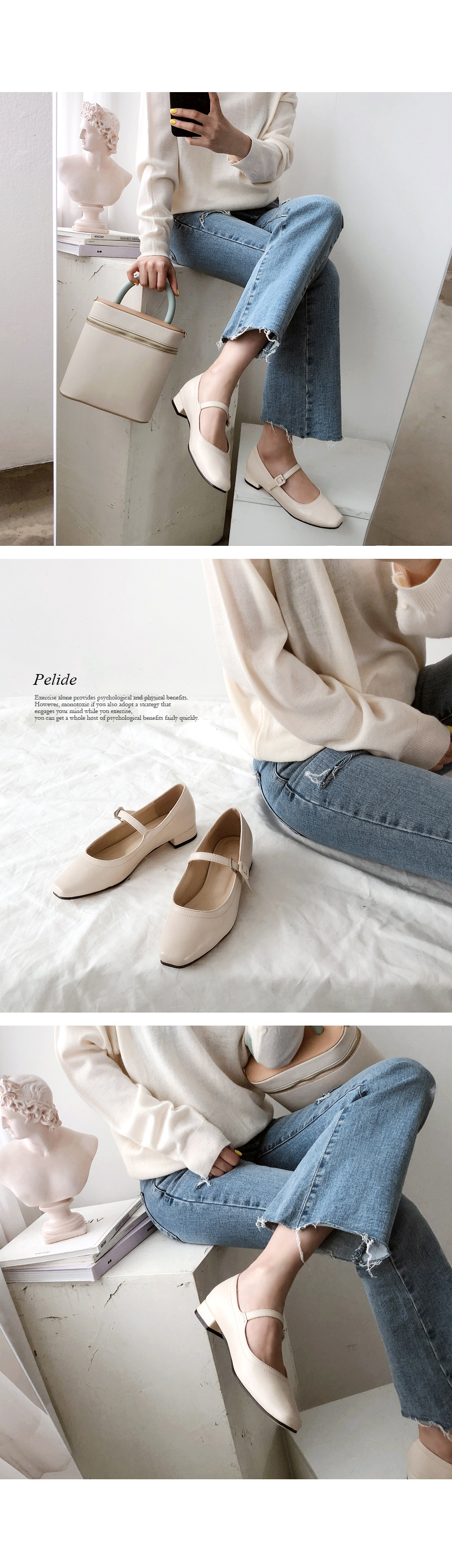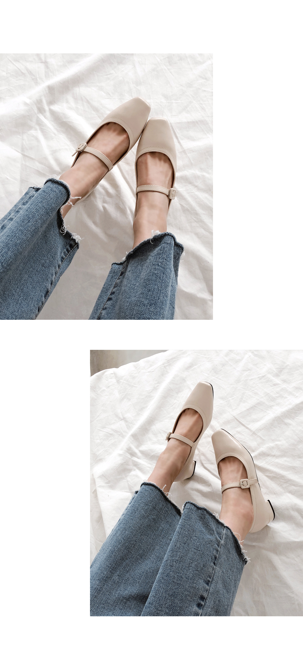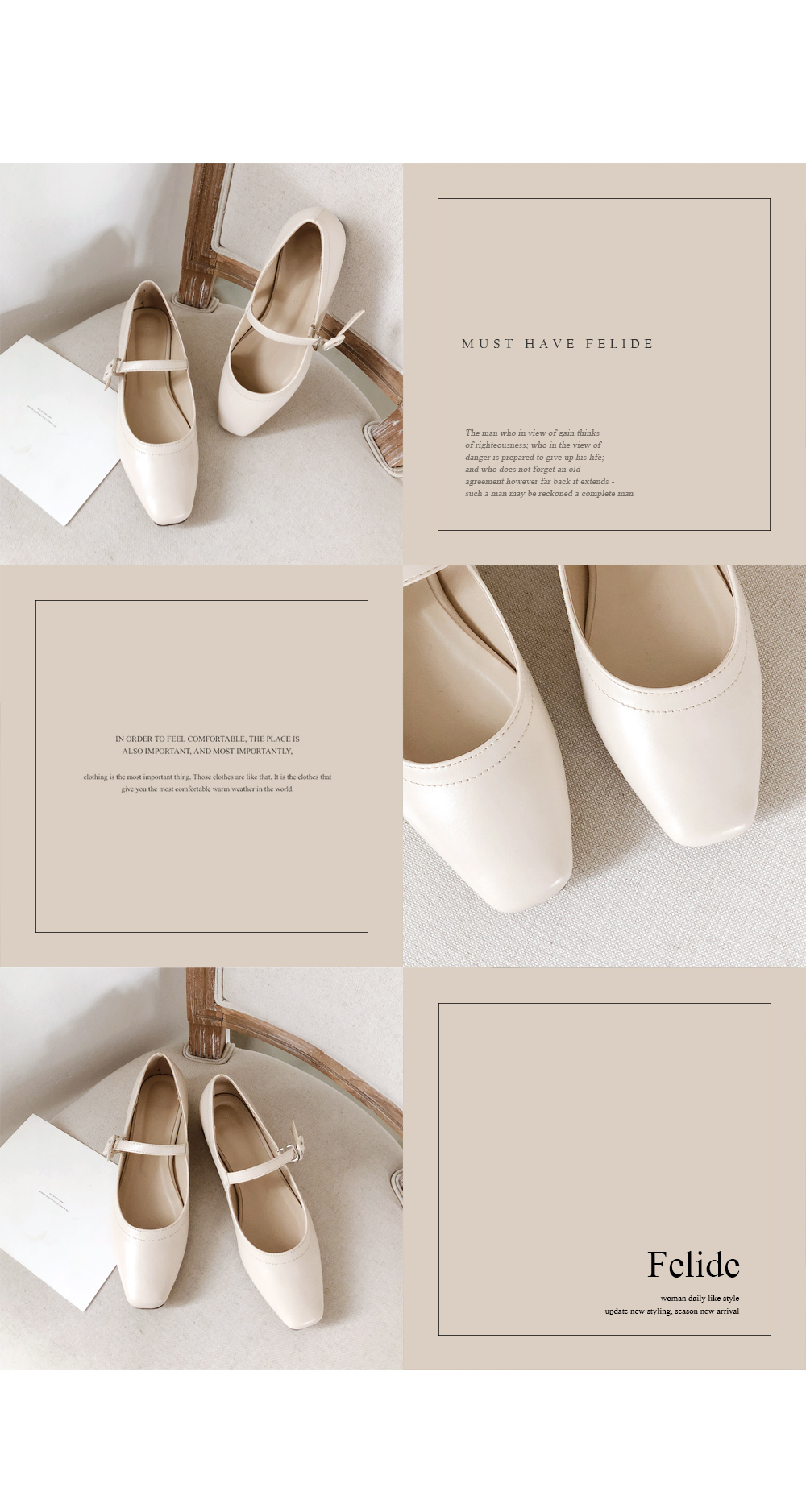 SIZEFIT - 225,230,235,240,245,250 - 굽높이 : 2.5cm - 발볼이 정사이즈로 제작되었어요 DETAILS - 소재 : 인조소가죽 - 컬러 : beige,black - 안감 : 안감없음 - 피팅감 : 정사이즈 / 무게 : 가벼운편 - 착화감 : 정사이즈로 나왔어요 - 모델피팅 : 230