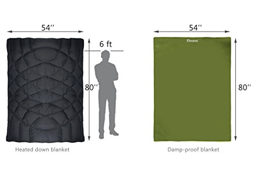 - Durable, Warm and Damp-proof: 650 fill duck down with 20D rip-stop Nylon shell makes the heated down blanket warm and durable, the moisture proof blanket keeps moisture out of you and the down blanket, and keep you warmer and more comfortable