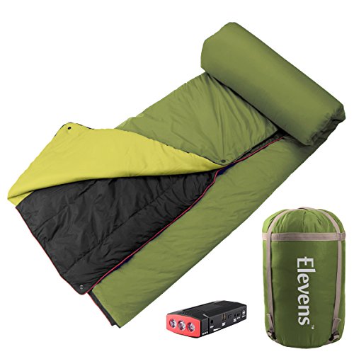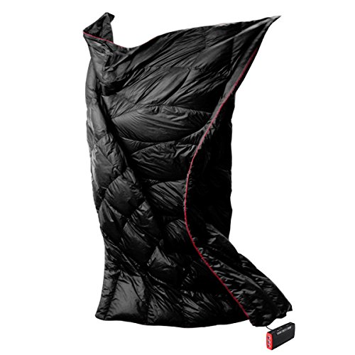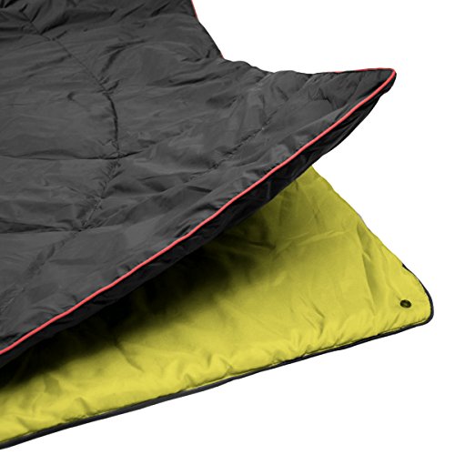 - 2 in 1 Blanket Alternative to Sleeping Bag- the lightweight heated down blanket and the blue sleeping pad is connected by buttons on edges and can be used separately. This 2 in 1 sleeping bag will be an essential companion for your trip in all seasons