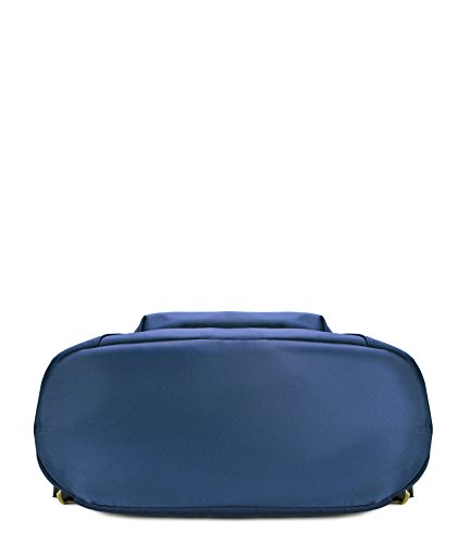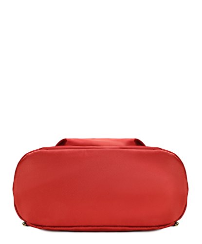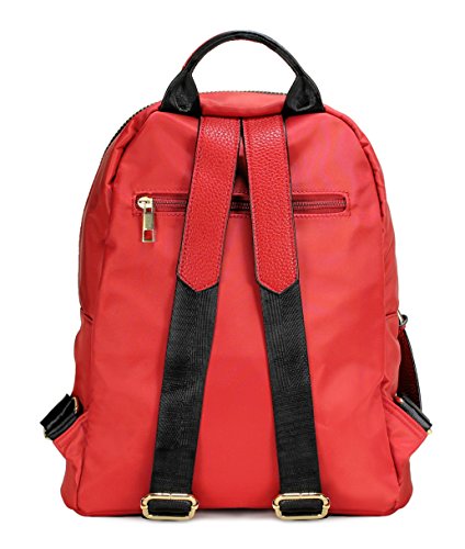 -. Feature : High quality synthetic vegan leather and nylon. / Fabric lining. / Modern gold hardware. / Interior cell phone pocket, multifunctional slip and side zipper pocket. / Size: 11.7"x12"x5.3"