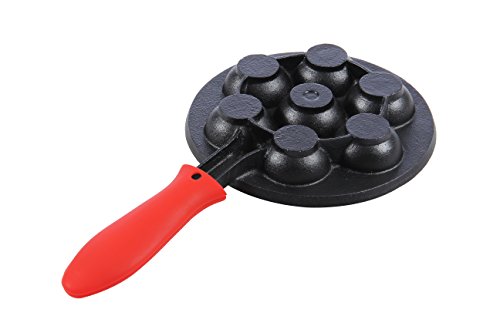 Upstreet's cast iron aebleskiver pan is scratch resistant and easy to clean. It weighs 4 lbs.