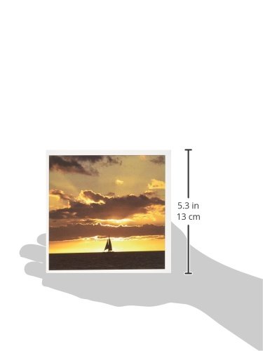 3dRose Sailboat at Sunset Sailing boat ship with sails at sea Ocean yellow sailor - Greeting Cards, 6 x 6 inches, set of 12 (gc_112954_2)