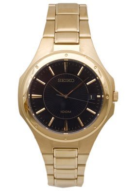 세이코import 세이코 Mens Black Dial Gold Tone Ion Plated Stainless Steel 남성 맨즈 손목시계 【병행수입품】