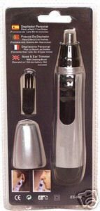 Nose and ear hair trimmer. Includes hair trimmer with cleaning brush Size (LxWxH) 12cm x 2.5cm x 2.5cm Easy to grip - rubber sliding On / Off switch Handy, lightweight, and safe to use Small stainless steel trimming head for nose and ear hair removal Cordless operation Operates on 1 x AA battery (not included)