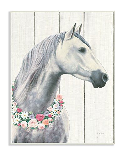 Stupell Industries Spirit Stallion Horse With Flower Wreath Oversized Wall Plaque Art, Proudly Made in USA