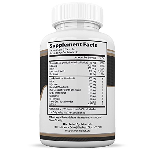 GRAY HAIR AWAY - ANTI GRAY HAIR NATURAL FORMULA for Men and Women: Is an amazing and highly concentrated, all-natural blend of natural potent ingredients like: Folic Acid, Biotin, Pantothenic Acid, Zinc, Vitamin B6, Catalase, Horse Tail, Saw Palmetto, PABA, L-Tyrosine, Plant Sterols, Nettle Root Extract, Chlorophyll, Fo Ti Powder, and Barley Grass Juice Powder. This incredible blend is believed to slow down the process of aging and help with restoring natural hair color.