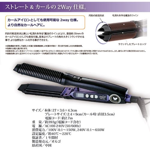 원본상품명: Venusヴィナス 業務用ヘアアイロン(ストレト&カル) ブルケア ブラック NCD-8150V(BK)