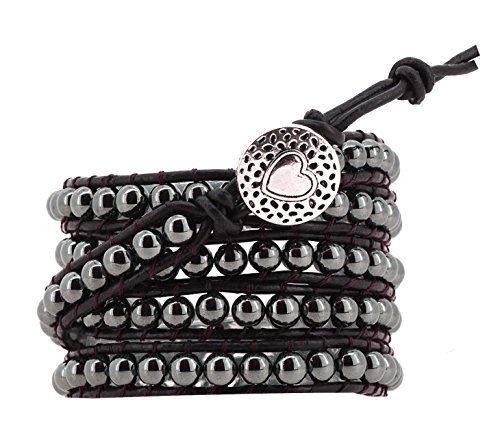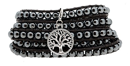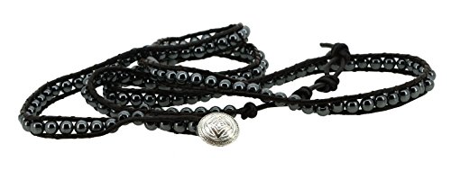 -. Binding : Jewelry -. Brand : Mandala Crafts -. Department : womens -. Feature : Made from Black Non-Magnetic Simulated Hematite Beads and Dark Brown Leather Cord; (Not Natural Stone) / Hematite Bead Size: 6mm; Width: 0.35 Inch; Length: 40 Inches; / Unique Yoga and Meditation Inspired Removable Alloy Metal Celtic Tree of Life, Om, or Lotus Pendant Charm; / Handmade Long Wrap Bracelet (About 5 Times); -. Label : Mandala Crafts -. Manufacturer : Mandala Crafts -. ProductGroup : Jewelry -. ProductTypeName : FASHIONNECKLACEBRACELETANKLET -. Publisher : Mandala Crafts -. Studio : Mandala Crafts -. Title : Long Leather Black Simulated Hematite Stone Bead Wrap Around Bracelet with a Removable Charm, 40 Inches