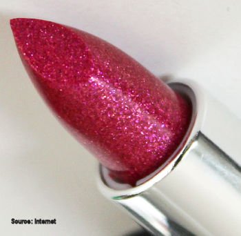 Iconic designer lipstick in groundbreaking metallic hot pink with iridescent micro glitter in luxurious presentation