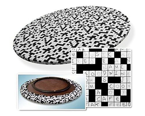 -. Feature : Hardwood Lazy Susan / 22" across / Great for Board Games! / Crossword Puzzle Fabric Theme
