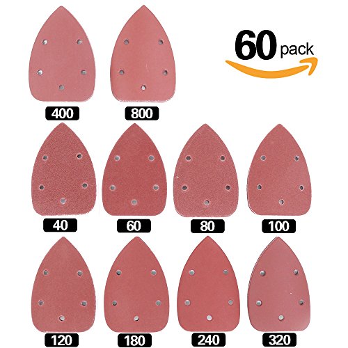 Swpeet 60 Pcs Mouse Detail Sander Sanding Discs Sandpaper Hook and Loop Pads for Mouse Sander Grits Sanding Sheets 10 Sizes - 40 / 60 / 80 / 100 / 120 / 180 / 240 / 320 / 400/ 800 Grits