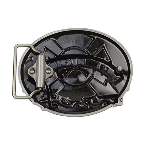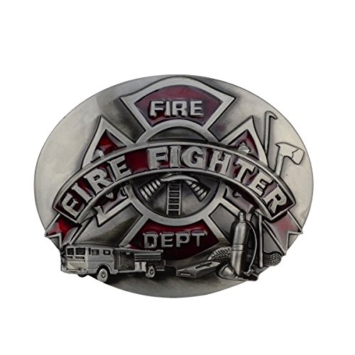 Binding : Apparel Product Description This Men's or Women's Metal Embossed Firefighter Buckle is sure to catch your eye. Red details with a satin silver finish, this 3-D belt buckle features a Maltese cross in red with Fire Fighter centered and embossed across the face of the buckle. At the top and bottom of the Maltese cross reads FIRE DEPT, and the buckle features a fireman's axe, ladder, fire truck, and oxygen tank and mask. Measuring 3" Wide and 3 3/4" tall, this belt buckle makes a great gift for a fellow firefighter, friends or family in the Department, or for yourself. Men's or Women's FD Logo Belt Buckle Fashion Accessory ships brand new in manufacturer's packaging, with our 100% customer satisfaction guarantee. 0