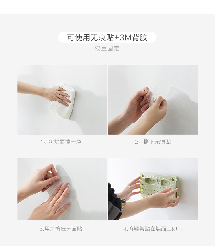 Summary: PP material, can be pasted, wall nails, free installation, wall-saving storage space, easy to store all kinds of shoes, neat and orderly, to meet the needs of use, make life more comfortable
