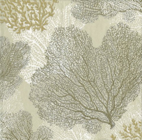 Entertaining with Caspari Sea Fans Paper Guest Towels, Taupe, Pack of 15