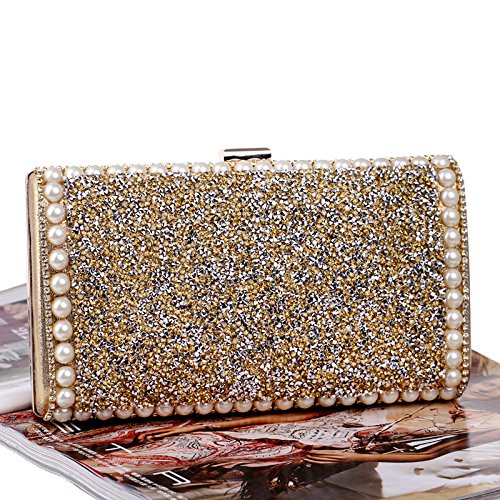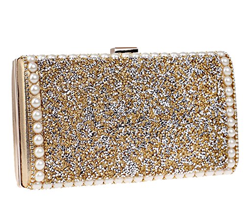 (missfiona)/Accessories/Handbags/DIRECT FROM USA/Missfiona Womens Luxury Full Beaded Evening Bag Hardbox Pearl Stud Trim Formal Clutch