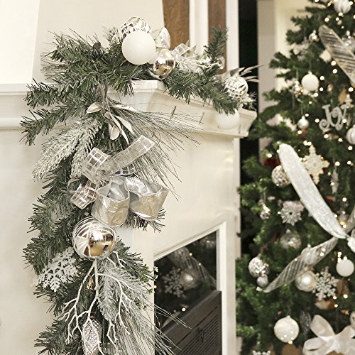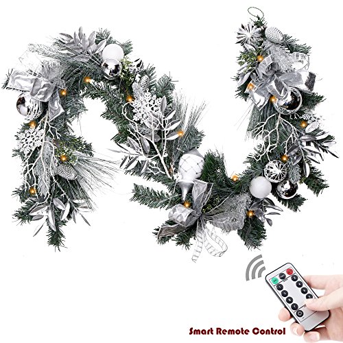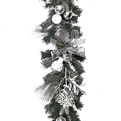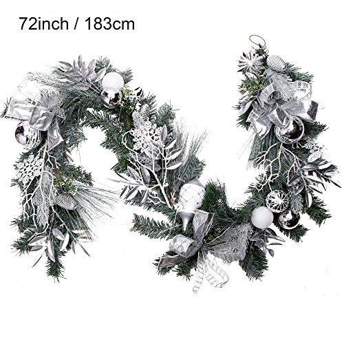 Valery Madelyn 6 Feet Silver Artificial Spruce Garland for Wedding Party Garden Office Wall Staircase Decoration , Balls Included, Battery Operated 20 LED Lights with Remote and Timer
