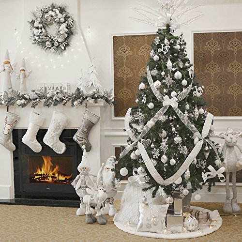 - Measure 6 ft/72inch, featuring diamond-bordered ornament and silvery ribbon bow