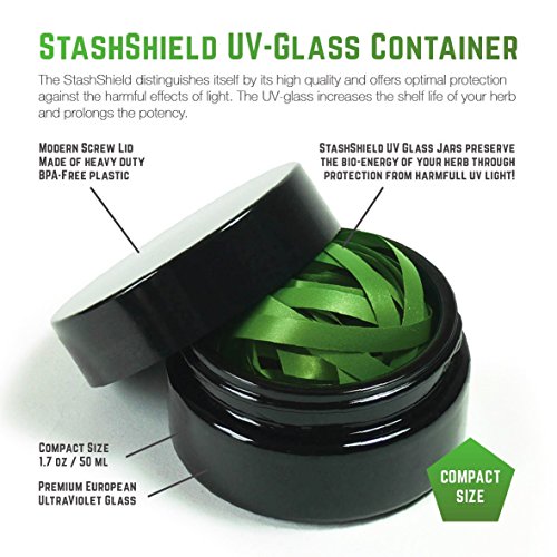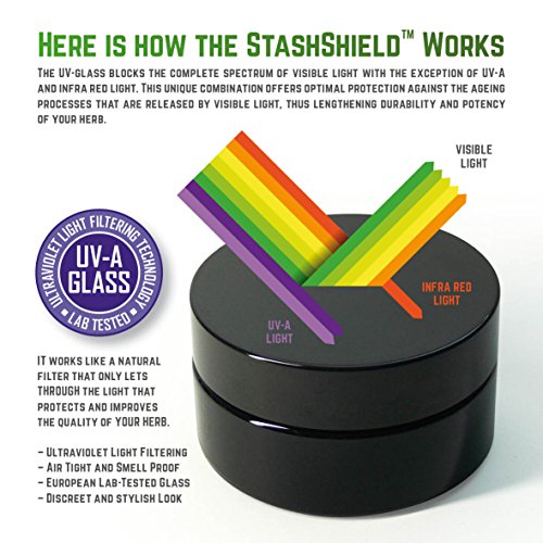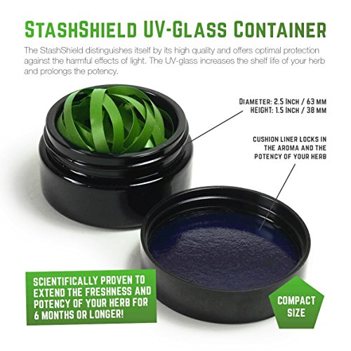 Lock in the freshness with the airtight StashShield Herb Storage & Preservation Jars by Masterdam Rolling Supplies. Get the Best in Quality & Value. We spared no expense, using Premium European UltraViolet Glass and a BPA-Free lid with FreshLock Liner. We're confident you won't be disappointed!