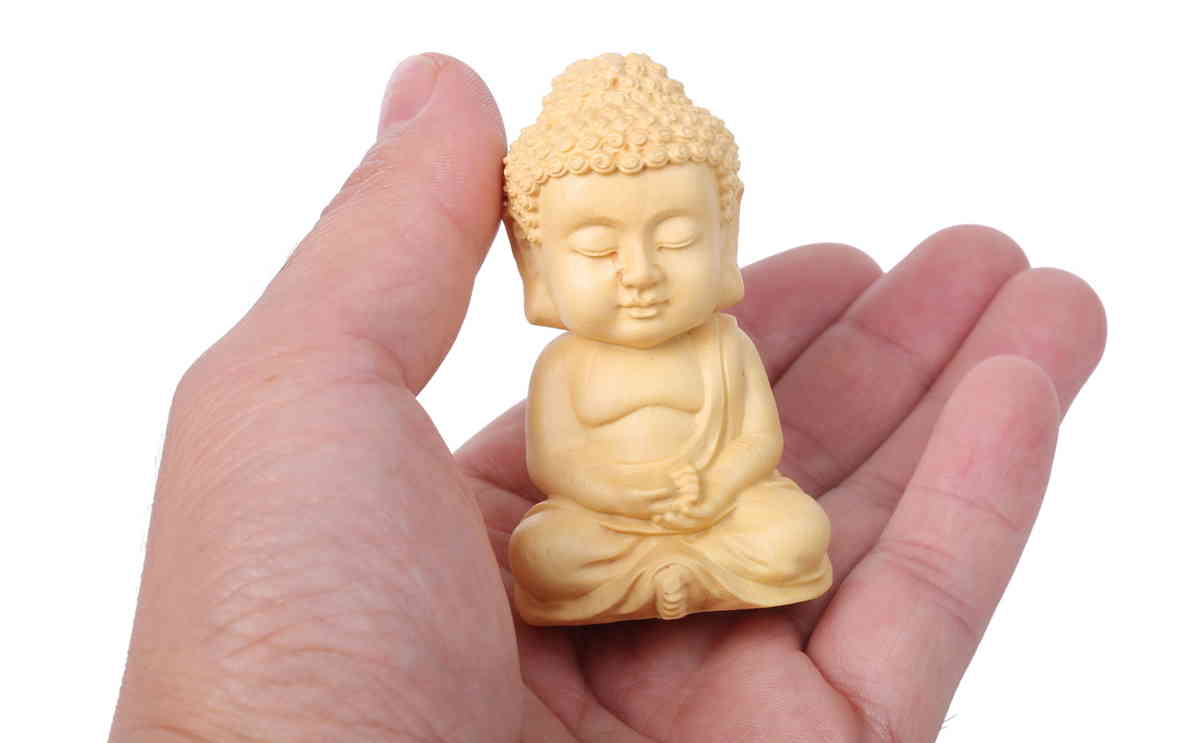 ミニ型ツゲの木彫り仏教の開祖である釈迦を指す如来の彫刻像です。