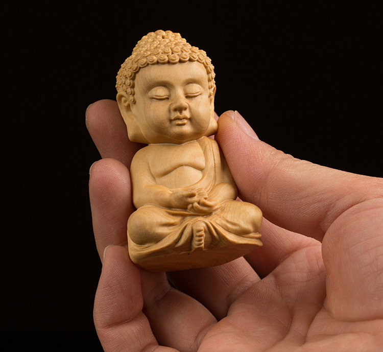 ミニ型 釈迦 木製彫刻 仏教の開祖 ツゲの木彫り 如来 にょらい 置き物