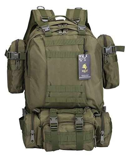 -. Brand : VIDING POLO -. Feature : [Main Compartment Dimensions] 23" Lx 15" W x 6" H ; Capacity: 50 - 60L Large campacity with a lot of functional pocket / [Material]Rugged Weather Resistant 600 D Nylon Material / [Heavy-Duty Carry and Drag Handle] Two double zipper pulls on the main compartment for easy access. Professional foam pad back panel for extra comfort and maximum airflow. Grommets on all compartments for drainage. / [Molle Webbing & Interlayers]The main compartment features interlayers,which can better protect your items.and molle webbing can hand on small items,or for attaching additional pouches or gear / [3 Removable Bags]One main bag with 3 detachable molle pouches attached on front and two sides -. IsAutographed : 0 -. IsMemorabilia : 0 -. Label : VIDENG POLO -. Manufacturer : VIDENG POLO -. MPN : PC29 -. PartNumber : PC29 -. ProductGroup : Sports -. ProductTypeName : OUTDOOR_RECREATION_PRODUCT -. Publisher : VIDENG POLO -. Studio : VIDENG POLO -. Title : VIDENG POLO PC29 Outdoor Molle Compatible with 3 Detachable Pockets Tactical Military Style 55L(50L+3L+1L+1L) Rucksack Backpack for Camping Hiking Mountain Trekking