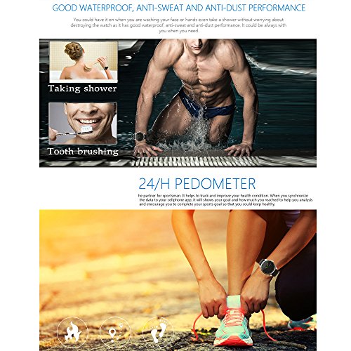 Bluetooth smartwatch evershop 1.4 inches IPS Round Water Resistant with Sleep Monitor, Pedometer, Remote camera for IOS and Android Device (Black)