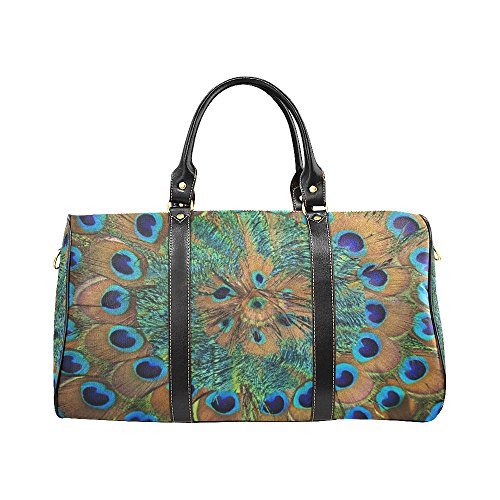 -. Title : Peacock Feathers Travel Duffel Bag Waterproof Weekend Bag with Strap