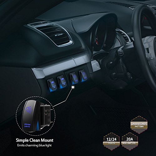 MicTuning MIC-LSD1, 5 Pin Driving Lights Rocker Switch, On-Off LED Light, 20A 12V, Blue