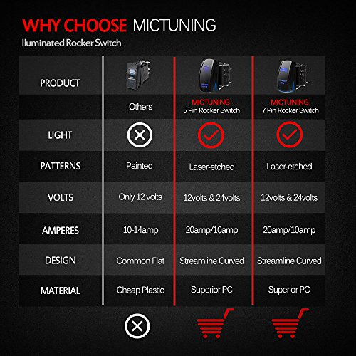 WHAT YOU'LL GET: 1 YEAR QUALITY GUARANTEE for Genuine MICTUNING 5 Pin Rocker Switch and Lifetime Friendly Customer Service. Package included : 1x 5 Pin Rocker Switch,1x jumper wires set, 1x Diagram