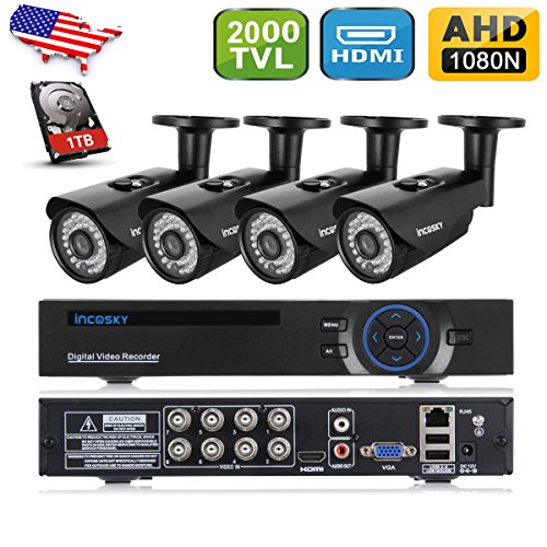 incoSKY Security Camera System, 8CH 1080p DVR and 4XIndoor/Outdoor 1.3MP 960P 2000TVL Cameras with IR Night Vision LED and 1TB HDD for Home Monitoring, CCTV Surveillance,Black2