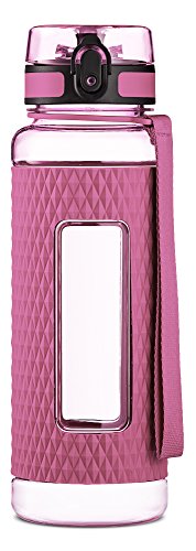 BPA Free 32 oz Tritan water bottle with silicone sleeve, leak proof one-click flip top lid and fruit infuser filter. Stop paying for overpriced bottled water and sugar filled sodas and energy drinks. Experience natural hydration and fruit infused flavors anywhere with our premium quality shatter free water bottle. Made with chemical and BPA free Tritan polymers this water bottle also features a secure leak free flip top lid and easy pour nozzle.