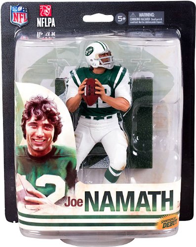 -. Feature : After many years of anticipation one of the greatest and most iconic NFL players of all time will be making his McFarlane Sports Picks debut / Joe Namath's inaugural figure depicts the legend during the 70's era, surveying the field wearing his trademark Jets green jersey / Figure stands approximately 6 inches tall