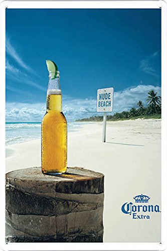 Tin Sign Metal Poster Plate (8"x12") of Corona Beer And Nude Beach by Food & Beverage Decor Sign