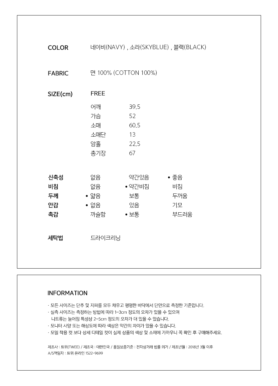 얇은 두께감으로 지금부터 초여름 까지 즐기시기 좋아요~