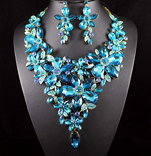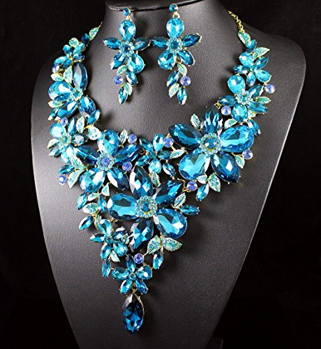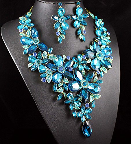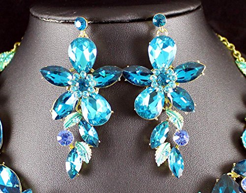 -. Binding : Jewelry -. Brand : Janefashions -. Department : womens -. Feature : Simply stunning! You are looking at huge blue flowers necklace and earrings set. Sparkling first class Blue, Icy Blue and Teal Genuine Austrian Rhinestones are set on beautiful shiny Gold Tone metal with hand-painted leaves. This set shines a lot! It is perfect for any special occasions. Thanks for looking! / Size: Necklace is approx. 17 inches Long adjustable to 19 inches Long, center section is 5-7/8 inches Height, with lobster clasp. Earrings are for pierced ears, approx. 3 inches Long x 1-1/2 inch wide. / Condition: Brand New / Weight: Necklace -10 oz; Earring: 0.7 oz/pc / Janefashions is a US trademark and seller Janefashions is its ONLY owner. We will pursue legal action against trademark infringement in case of UNAUTHORIZED sale or resale. -. Label : Janefashions -. Manufacturer : Janefashions -. Model : N1706M -. MPN : N1706M -. PartNumber : N1706M -. ProductGroup : Jewelry -. ProductTypeName : FASHIONOTHER -. Publisher : Janefashions -. Studio : Janefashions -. Title : Janefashions LARGE FLOWERS BLUE AUSTRIAN RHINESTONE CRYSTAL BIB NECKLACE EARRINGS SET N991