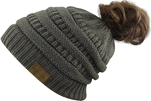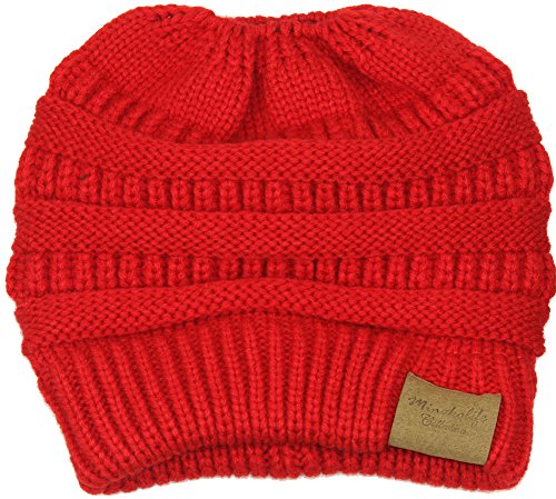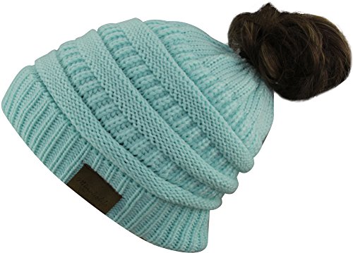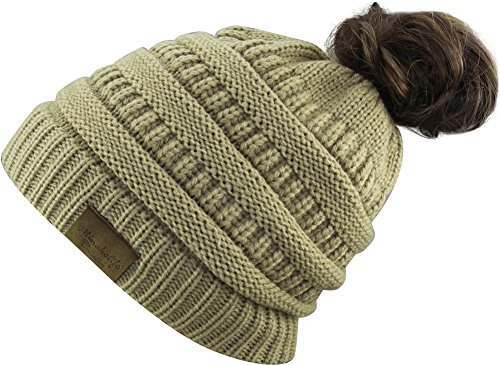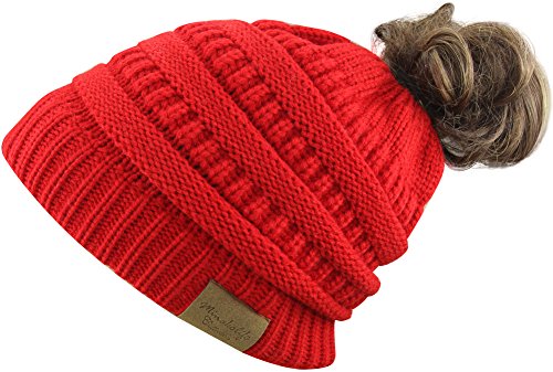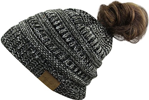 (MINAKOLIFE)/Accessories/Hats/DIRECT FROM USA/MINAKOLIFE BeanieTail Soft Stretch Cable Knit Messy High Bun Ponytail Beanie Hat