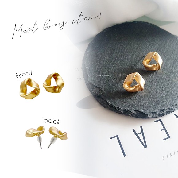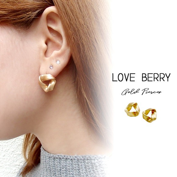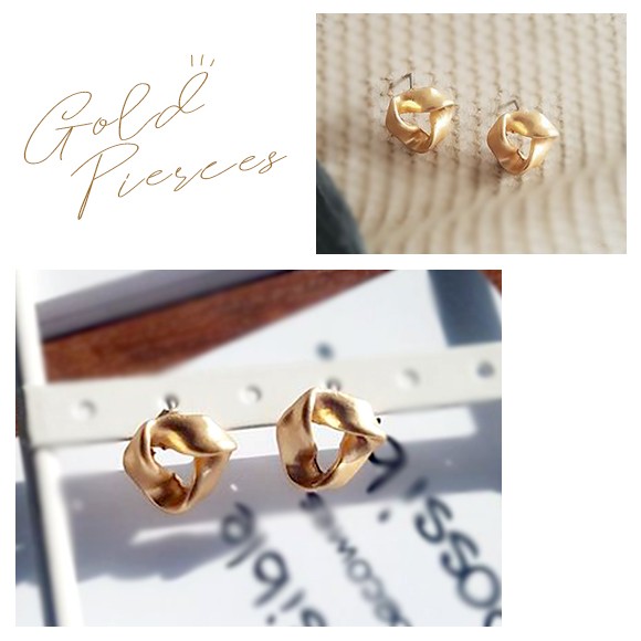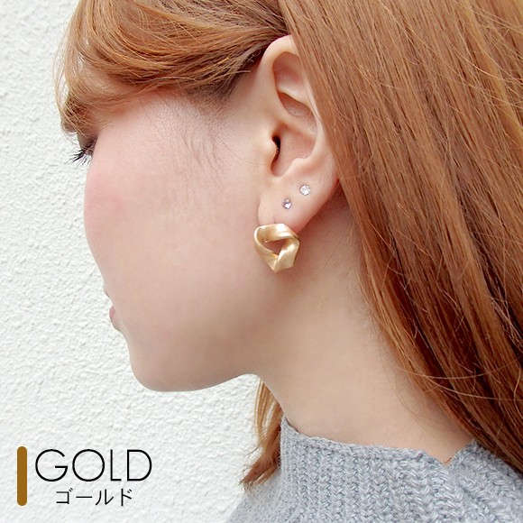 ひねりデザインのゴールドピアス。