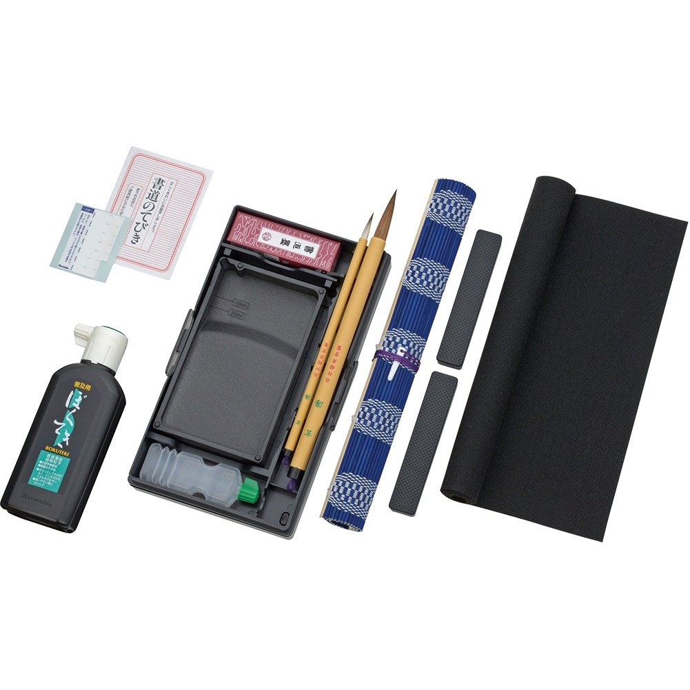 【内容】書道ケース・中皿・筆巻・墨・太筆・細筆・墨滴・硯・文鎮・下敷・水差し