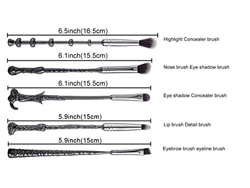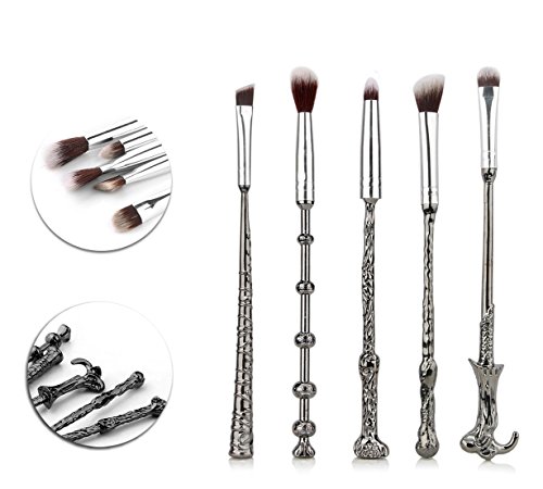 5pcs Makeup Imitation Game Magic Wand Makeup Brushes Cosmetic Brush Kit (Silver Wand)