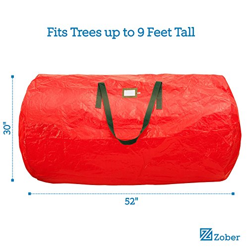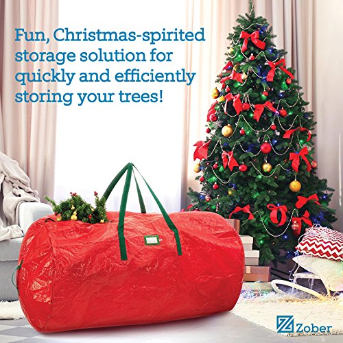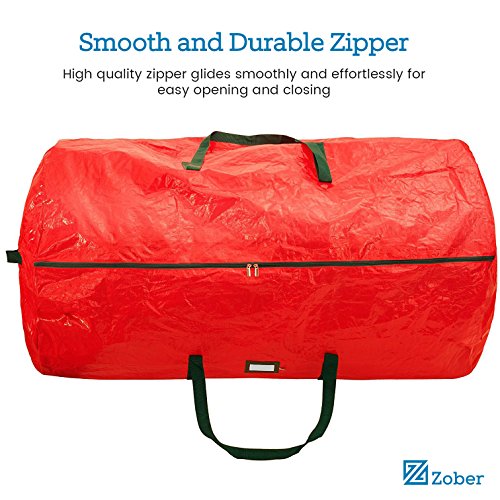 Zober Christmas Tree Storage Bag - Artificial Up to 7' Christmas Tree Organizer for Un-Assembled Trees, with Sleek Zipper - Also Accommodates Holiday Inflatables | 52"L 30"W 30"D (Red)