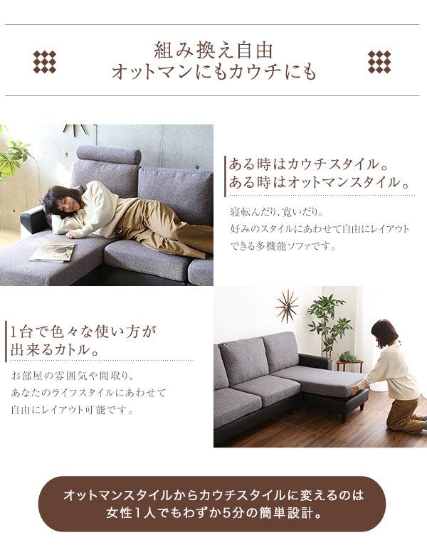 ●オットマンスタイルからカウチスタイルへレイアウト自由自在!