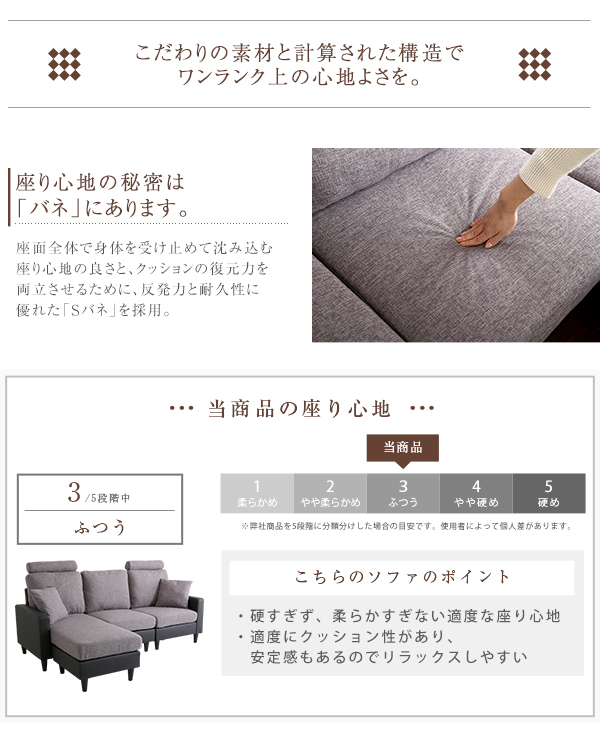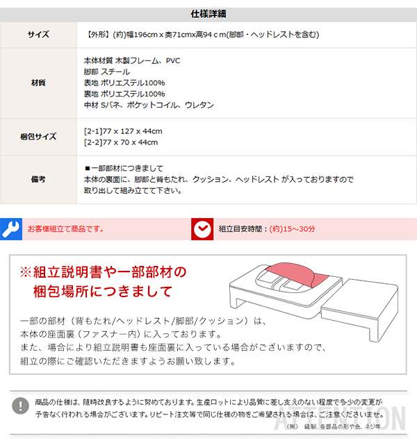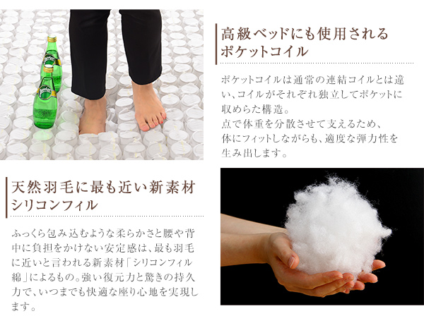 ●中材:Sバネ、ポケットコイル、ウレタン 脚部:スチール