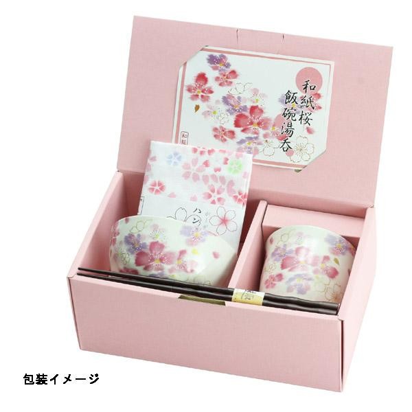 和紙の千切り絵のような桜をちりばめた飯碗湯呑です。大切な方へのギフトにも最適です。 |