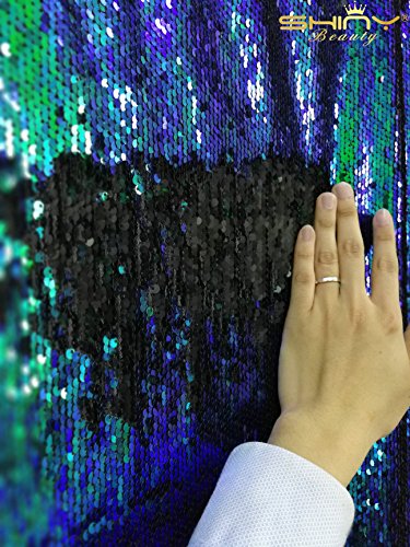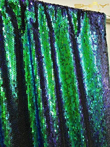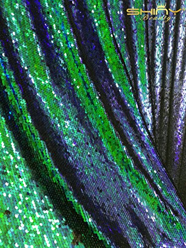 3 Feet 1 Yard-Green-Sequin Fabric For Sewing,Mermaid Peacock/Black Flip Up Reversible Sequin Fabric 5MM Sequins On Spandex Fabric Sold By The Yard